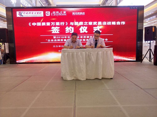 接下來(lái)市場(chǎng)調(diào)查部負(fù)責(zé)人發(fā)布了消費(fèi)警示報(bào)告,隨后居然之家武昌店總經(jīng)理蔡得法先生和《中國(guó)質(zhì)量萬(wàn)里行》湖北中心張旭東主任分別代表合作雙方進(jìn)行了簽約儀式。